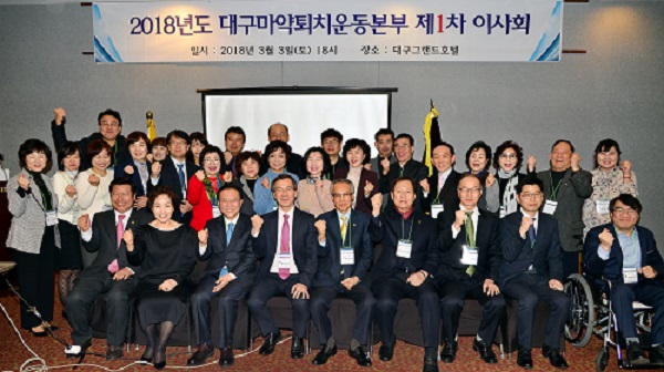 2018 Á¦1Â÷ ÀÌ»çȸ °³Ãִ뱸¸¶¾àÅðÄ¡¿îµ¿º»ºÎ´Â Á¦1Â÷ ÀÌ»çȸ¸¦ 3¿ù 3ÀÏ(Åä) ±×·¡µåÈ£ÅÚ¿¡¼ °³ÃÖÇÏ¿´´Ù. Çѱ¹¸¶¾àÅðÄ¡¿îµ¿º»ºÎ À̰æÈñ ÀÌ»çÀå, À±Àç¿Á ±¹È¸ÀÇ¿ø, ·ù±ÔÇÏ ´ë±¸½ÃÀÇȸ ÀÇÀå, ÀÌÇÑ±æ ´ë±¸½Ã¾à»çȸ ȸÀå, À¯Àç±Ù ¸¶¾à´ã´ç°Ë»ç µîÀÌ Âü¼®ÇÏ¿´À¸¸ç, ´ë±¸½Ã º¸°Çº¹Áö±¹ ÀÌ¿µ¿Á ±¹Àå, ´ë±¸Áö¹æ°ËÂûû ¿ì³²ÁØ ºÎÀå°Ë»ç°¡ ´ç¿¬Á÷ ÀÌ»ç·Î ¼±ÀӵǾú´Ù. Çѱ¹¸¶¾àÅðÄ¡¿îµ¿º»ºÎ ÀÌ»çÀå(À̰æÈñ)Àº 6¿ù26ÀÏ ¸¶¾àÅðÄ¡ÀÇ ³¯À» ±¹°¡±â³äÀÏ·Î ÁöÁ¤ ¹Þ¾Æ¼ ±Ý³âµµ¿¡ Á¦ 1ȸ¸¦ ¸ÂÀÌÇÏ´Â ÀǹÌÀÖ´Â Çà»ç¸¦ Ä¡·ç°Ô µÇ¾ú´Ù. 12°³ ÁöºÎ°¡ ÈûÀ» ÇÕÃļ Àü ±¹¹ÎÀÌ Âü¿©ÇÒ ¼ö ÀÖ´Â Çà»ç·Î ½ÂȽÃ۱â À§ÇØ ³ë·ÂÇϰí ÀÌÇà»ç¸¦ ±âÁ¡À¸·Î ±¹¹ÎµéÀÇ ÀǽÄÀüȯÁ¡ÀÌ À¸·Î »ïÀ» ¼ö ÀÖ´Â °è±â°¡ µÇµµ·Ï ´çºÎÇÏ¿´´Ù