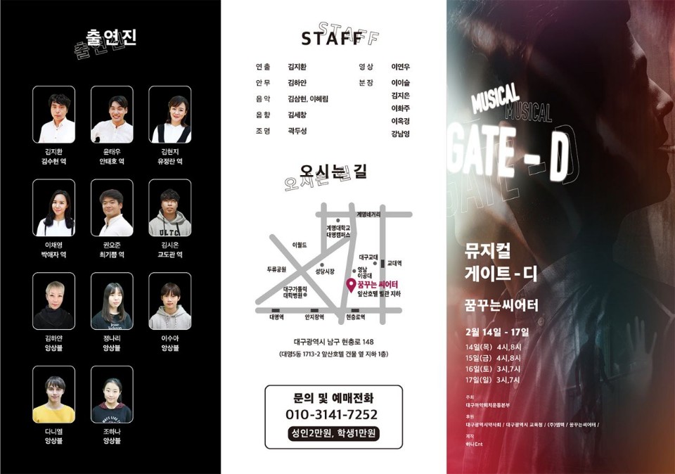 <û¼Ò³â ¾à¹° ¿À¡¤³²¿ë ¿¹¹æ ¹ÂÁöÄà GATE-D °ø¿¬ ¾È³»>ÀÏ ½Ã: 2¿ù 14ÀÏ(¸ñ) ~17ÀÏ(ÀÏ)±îÁö 4Àϰ£ Àå ¼Ò: ²Þ²Ù´Â ¾¾¾îÅÍ (´ë±¸ ³²±¸ ÇöÃæ·Î 148) ¼Ò±ØÀå.°ø¿¬½Ã°£: 14ÀÏ(¸ñ)~ 15ÀÏ(±Ý) ¿ÀÈÄ 4½Ã, 8½Ã 16ÀÏ(Åä) ~17ÀÏ(ÀÏ) ¿ÀÈÄ 3½Ã, 7½Ã ¸¹Àº °ü¶÷ ºÎʵ右´Ï´Ù.