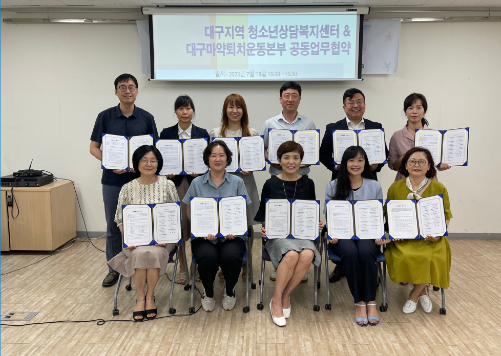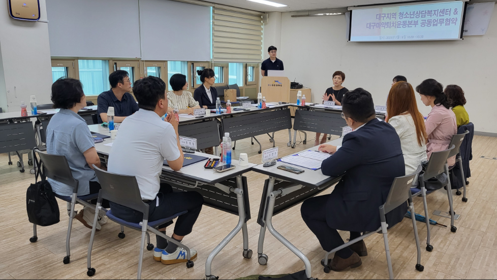 ´ë±¸¸¶¾àÅðÄ¡¿îµ¿º»ºÎ ÀÌÇâÀ̺»ºÎÀåÀº 10°³ û¼Ò³â»ó´ãº¹Áö¼¾ÅÍ(´ë±¸½Ã, Áß±¸, µ¿±¸, ¼±¸, ³²±¸, ºÏ±¸, ¼ö¼º±¸, ´Þ¼±¸, ´Þ¼º±º, ±ºÀ§±º)¿ÍÀÇ ¾÷¹«Çù¾àÀ» ÅëÇØ ¾à¹° ¿À³²¿ë ¹× û¼Ò³â ¸¶¾à·ù »ç¿ë ±ÙÀýÀ» À§ÇÑ ¼ºñ½º Ȱ¼ºÈ¸¦ À§ÇØ Çù·ÂÇϱâ·Î ÇÏ¿´´Ù.