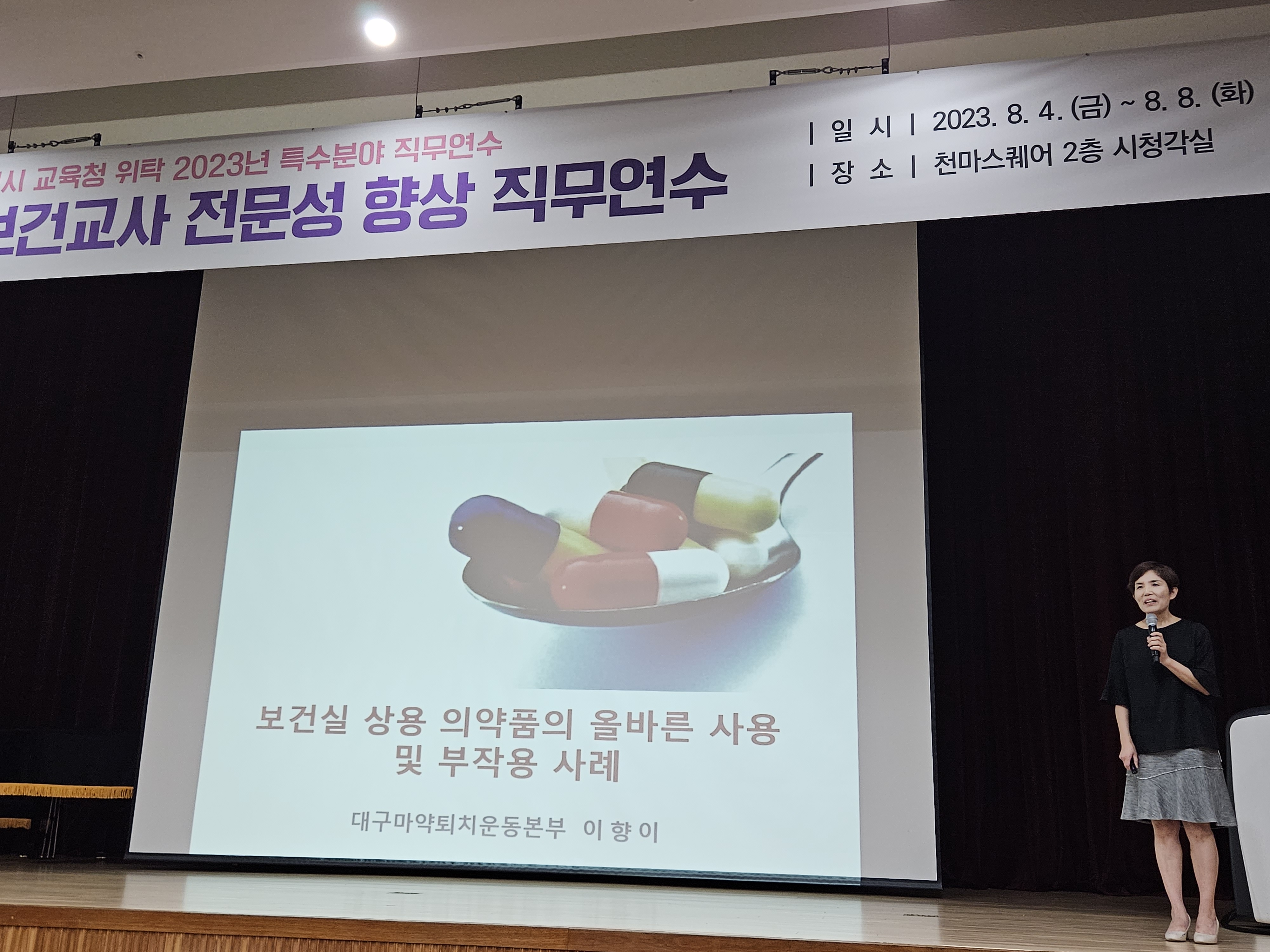 8¿ù 4ÀÏ ÀÌÇâÀÌ º»ºÎÀåÀº ¿µ³²À̰ø´ëÇб³ ½Ãû°¢½Ç¿¡¼ ´ë±¸Áö¿ª º¸°Ç±³»ç ´ë»óÀ¸·Î Á÷¹«¿¬¼ö ±³À°À» ÇÏ¿´´Ù. 'º¸°Ç½Ç »ó¿ë ÀǾàǰÀÇ ¿Ã¹Ù¸¥ »ç¿ë ¹× ºÎÀÛ¿ë »ç·Ê'¸¦ ÁÖÁ¦·Î ÇÑ ¿¬¼ö±³À°À¸·Î 8¿ù 4ÀÏ(±Ý), 8¿ù 7ÀÏ(¿ù), 8¿ù 8ÀÏ(È) 3Àϰ£ °è¼ÓµÈ´Ù. ¹«´õ¿î ³¯¾¾Áö¸¸ º¸°Ç±³»ç ¿ª·® °È ±³À°¿¡ ¸¹Àº ¼±»ý´ÔµéÀÌ Âü¼®ÇÏ¿´´Ù.