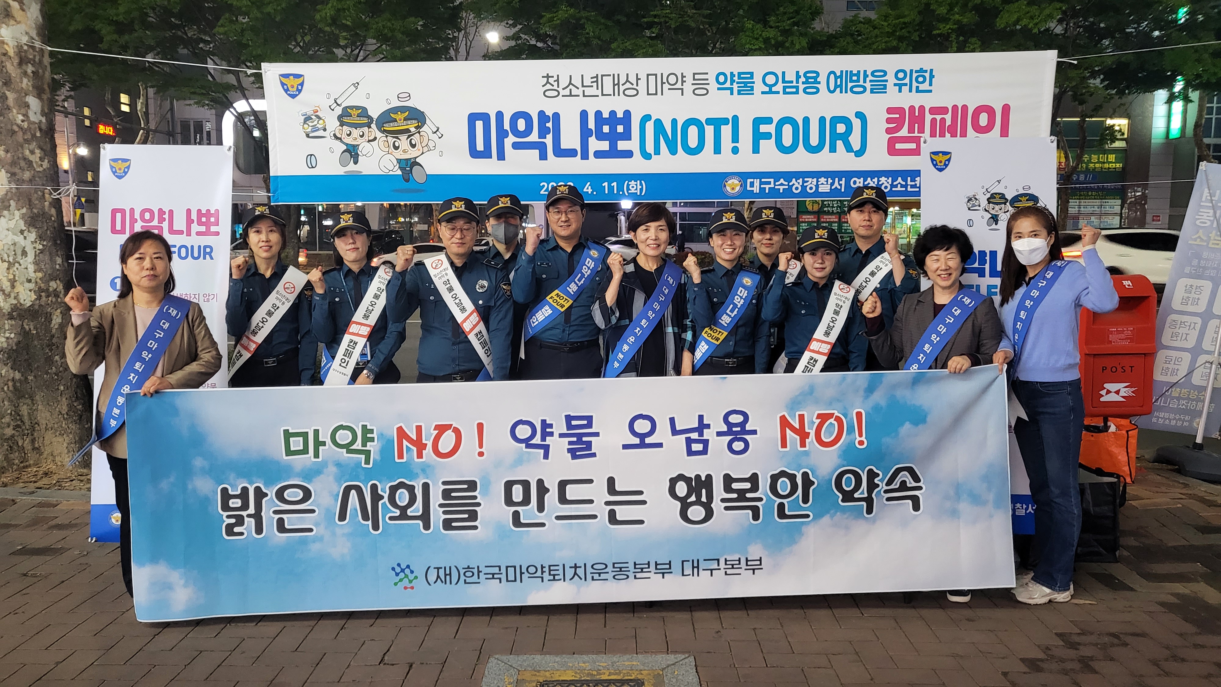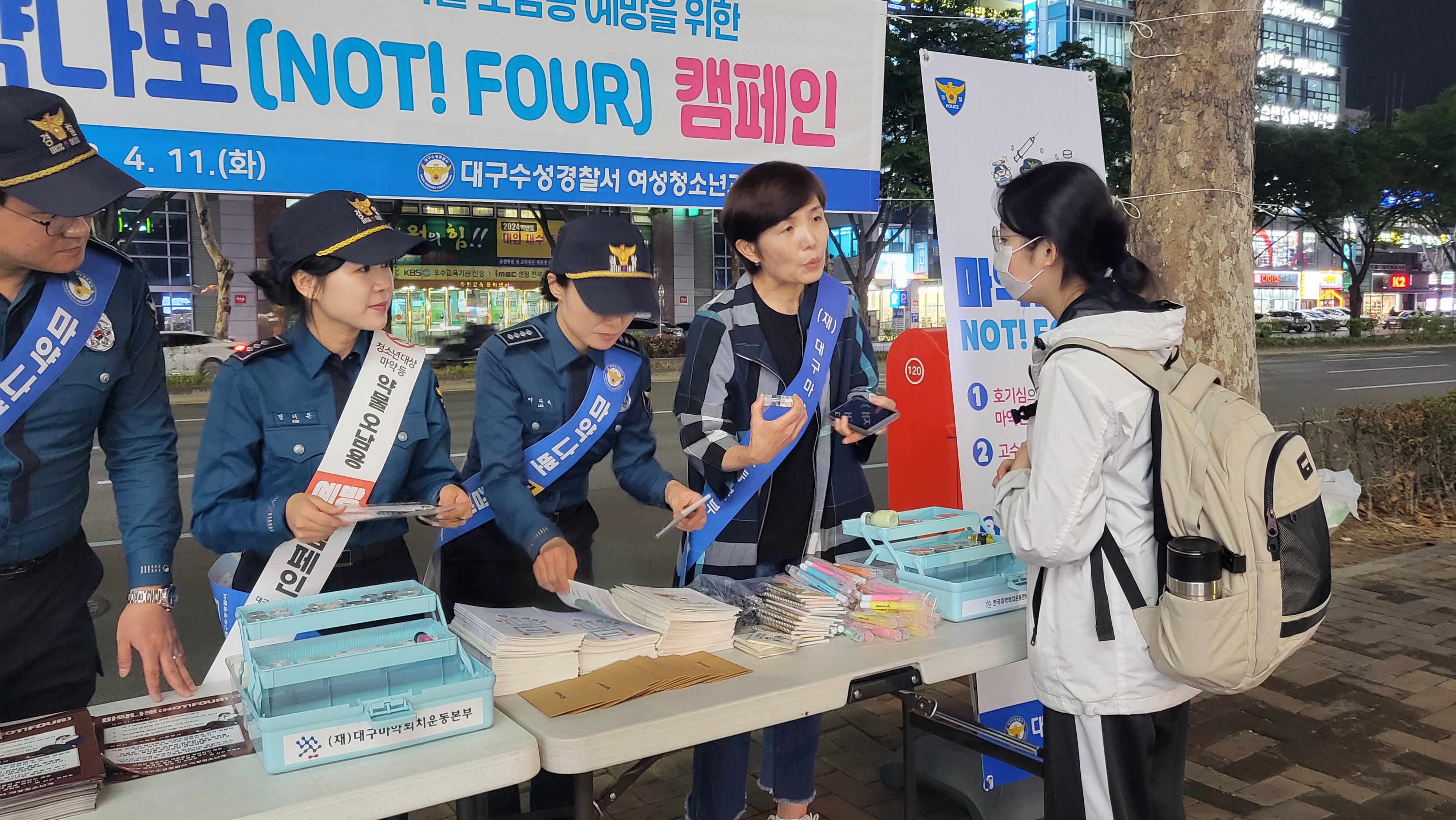 4¿ù 11ÀÏ ¿ÀÈÄ 7½ÃºÎÅÍ ´ë±¸ ¼ö¼º±¸ Çпø°¡ ÀÏ´ë¿¡¼ ´ë±¸ ¼ö¼º°æÂû¼¿Í ÇÕµ¿À¸·Î Ä·ÆäÀÎÀ» ½Ç½ÃÇÏ¿´´Ù. ÃÖ±Ù ¼¿ï¿¡¼ ¹ß»ýÇÑ ¸¶¾à À½·á »ç°ÇÀÇ Ãæ°ÝÀ¸·Î ´ë±¸ û¼Ò³âµéÀ» ¸¶¾àÀ¸·ÎºÎÅÍ ¾ÈÀüÇÏ°Ô Áö۱â À§ÇØ ÇлýµéÀÌ ¸¹ÀÌ ´Ù´Ï´Â °Å¸®¿¡¼ ½Ã¹Îµé¿¡°Ô ¸¶¾à ¹üÁË ¿¹¹æ È«º¸¹°À» ³ª´²ÁÖ¸ç À§Ç輺À» ¾Ë·È´Ù. ¿ì¸® ÇлýµéÀÌ ¸¶¾à·ù ¹üÁ˷κÎÅÍ ¾ÈÀüÇÏ°í °Ç°ÇÏ°Ô ¼ºÀåÇÒ ¼ö ÀÖµµ·Ï ¿¹¹æ±³À° Ȱµ¿À» ´õ °ÈÇϰí Áö¼ÓµÇ¾î¾ß ÇÒ°ÍÀÌ´Ù.