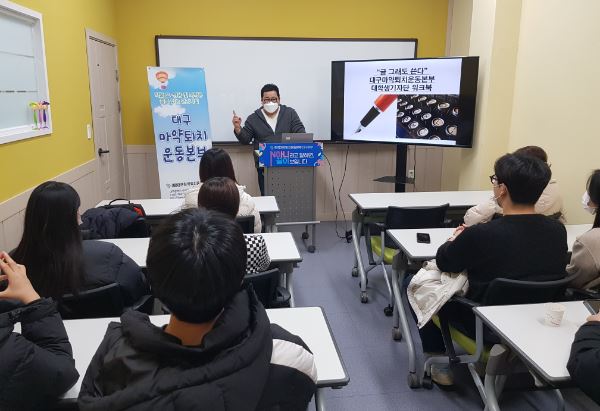 ¿ÃÇØÃÊ ¼³¸³ÇÑ ´ëÇлý ±âÀÚ´ÜÀº ¸¶¾à·ù »ç¿ëÀÌ ±ÞÁõÇϰí ÀÖ´Â 20~30´ë ¿¬·ÉÃþÀÇ ¸¶¾à·ù Áßµ¶ÇöȲ¿¡ ´ëÇØ ³Î¸® ¾Ë¸®°í °æ°¢½ÉÀ» °®°ÔÇÏ¿© ÀþÀº ÃþÀÇ Àνݳ¼± Ȱµ¿À»ÇÏ¿´´Ù. ÇÑÇØ Ȱµ¿¿¡ ´ëÇØ ¸¶°¨ÇÏ¸é¼ ±×µ¿¾ÈÀÇ È°µ¿³»¿ëÀ» ¼·Î À̾߱âÇÏ´Â °£´ãȸ¸¦ ¿¾ú´Ù. ÇöÁ÷ ±âÀڷμ Ȱµ¿ÁßÀÎ ¿µ³²ÀϺ¸ ±âÀÚ¸¦ ÃÊûÇÏ¿© ±âÀڷμ °¡Á®¾ßÇÒ ±âº» »ó½Ä°ú ±âÀÚ È°µ¿¿¡ ´ëÇØ ¾Ë¾Æº¸´Â ÀǹÌÀÖ´Â ½Ã°£µµ °¡Á³´Ù.