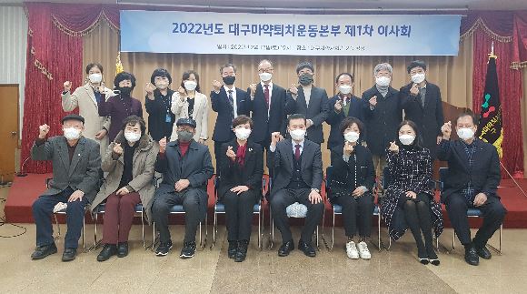´ë±¸¸¶¾àÅðÄ¡¿îµ¿º»ºÎ´Â 2022³âµµ Á¦1Â÷ ÀÌ»çȸ¸¦ 2¿ù12ÀÏ(Åä) 19½Ã ´ë±¸±¤¿ª½Ã¾à»çȸ°ü 2Ãþ °´ç¿¡¼ °³ÃÖÇÏ¿´´Ù. Äڷγª-19 »óȲÀ¸·Î Âü¼®ÀÌ ¾î·Á¿î ÀÌ»ç´ÔµéÀº À§ÀÓÀåÀ¸·Î °ü½ÉÀ» Ç¥ÇÏ¿´´Ù. 2021³â ÃßÁøÇß´ø ´ë±¸º»ºÎÀÇ È°µ¿»ç¾÷¹ßÇ¥¿Í À̻纯µ¿»çÇ×À» º¸°íÇÏ°í ±Ýº´¹Ì °¨»çÀÇ 2021³â °¨»ç°á°úº¸°í°¡ ÀÖ¾ú´Ù.