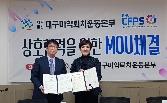 °è¸í´ëÇб³ ¾àÇдëÇÐ Æ÷·»Á÷¾à°úÇÐÀÚ Àü¹®Àη¾缺´Ü( ÀÌ»ó±æ ´ÜÀå)°ú ´ë±¸¸¶¾àÅðÄ¡¿îµ¿º»ºÎ(ÀÌÇâÀÌ º»ºÎÀå)´Â 1¿ù 19ÀÏ »êÇÐ Çù·Â ±³·ù Çù¾à½ÄÀ» °³ÃÖÇÏ¿© »óÈ£ Çù·ÂÇÏ°í °øµ¿¹ßÀüÀ» À§ÇÑ ¾÷¹« Çù¾àÀ» ü°áÇÏ¿´´Ù. ¾ç ±â°üÀº ±³À°, »êÇבּ¸ ¹× Á÷¹« Çù·Â, °»ç ¹× ÇлýÆÄ°ß°ú Àη¾缺 µî Áö¼ÓÀûÀÎ Çù·Âü°è¸¦ ±¸ÃàÇÏ°í »óÈ£ ¹ßÀüÀ» À§ÇØ Àû±Ø Çù·ÂÇϱâ·Î ¾à¼ÓÇÏ¿´´Ù.