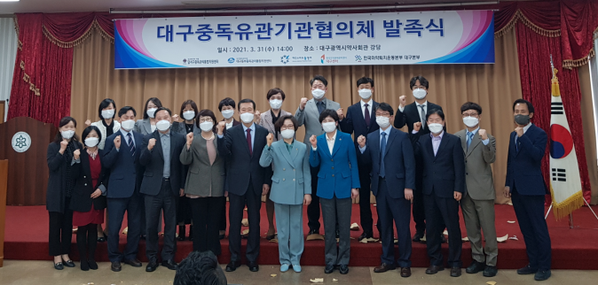 3¿ù 31ÀÏ ´ë±¸½Ã¾à»çȸ °´ç¿¡¼ ´ë±¸Áö¿ª Áßµ¶À¯°ü±â°üÇùÀÇü ¹ßÁ·½ÄÀ» °¡Á³´Ù. Áßµ¶ ¹®Á¦ ¾ø´Â °Ç°ÇÑ »çȸ ±¸Çö¿¡ ¾ÕÀå¼±â À§ÇØ °øµ¿¼±¾ð¹®À» ³¶µ¶Çϰí, ´ë±¸Áö¿ªÀÇ Áßµ¶ ¹®Á¦ ÇØ°á ¹× Áö¿ª»çȸ ¾ÈÀü¸Á ±¸Ãà°ú Áßµ¶ ¹®Á¦·ÎºÎÅÍ ¾ÈÀüÇÑ »çȸ¸¦ ¸¸µé±â À§ÇØ ´ë±¸Áßµ¶À¯°ü±â°üµéÀÌ ÇùÀÇü¸¦ ±¸¼ºÇÏ¿© Àû±ØÀûÀÎ ±³·ù¿Í Çù·ÂÀ» Çϱâ·Î ÇÏ¿´´Ù. À̳¯ Çà»ç¿¡ ´ë±¸±¤¿ª½Ã±³À°Ã» °ÀºÈñ ±³À°°¨À» ºñ·ÔÇÏ¿© ¸¹Àº Áö¿ª»çȸ´ÜüÀåµéÀÌ Âü¼®ÇÏ¿© °Ç°ÇÑ ´ë±¸¸¸µé±â¿¡ Àû±Ø Âü¿©Çϱâ·Î ÇÏ¿´´Ù.