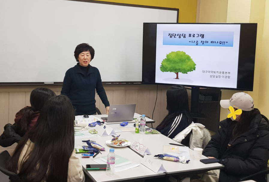 ´ë±¸¸¶¾àÅðÄ¡¿îµ¿º»ºÎ´Â û¼Ò³â ±â¼ÒÀ¯¿¹±³À° óºÐÀÚ¸¦ ´ë»óÀ¸·Î 1¿ù 18ÀÏ~2¿ù 8ÀÏ Áß 8ȸ±â Áý´Ü»ó´ãÀ» ½Ç½ÃÇÏ¿´´Ù. ¸¶¾à·ù Áßµ¶ÀÇ ÀáÀçÀû À§Ç豺ÀΠû¼Ò³âµé¿¡°Ô ¸¶¾à·ùÀÇ ÆóÇØ¿Í À§Ç輺¿¡ ´ëÇØ ¾Ë¸®´Â ±³À°°ú, Áßµ¶À¸·Î À̾îÁú ¼ö ÀÖ´Â ÀÚ½ÅÀÇ ÇൿÆÐÅÏ¿¡ ´ëÇØ ÀÌÇØÇϰí Áø·ÎŽ»öÀ» ÅëÇØ ¹Ì·¡ÀÇ ÀÚ±â¸ð½ÀÀ» Á¶¸ÁÇÔÀ¸·Î½á ±àÁ¤ÀûÀÎ ÀھƻóÀ» È®¸³ÇØ °¥ ¼ö ÀÖµµ·Ï µ½´Â Áý´Ü»ó´ãÀ¸·Î ±¸¼ºÇÏ¿´´Ù. ƯÈ÷ µ¿ÁúÁý´ÜÀ¸·Î û¼Ò³âÀÇ Çʿ信 ¸Â´Â ÇÁ·Î±×·¥À» ±¸¼ºÇÏ¿© Áý´Ü»ó´ãÀ» ½Ç½ÃÇÔÀ¸·Î½á û¼Ò³âµé¿¡°Ô À¯ÀÍÇÑ ½Ã°£ÀÌ µÇ¾ú´Ù.