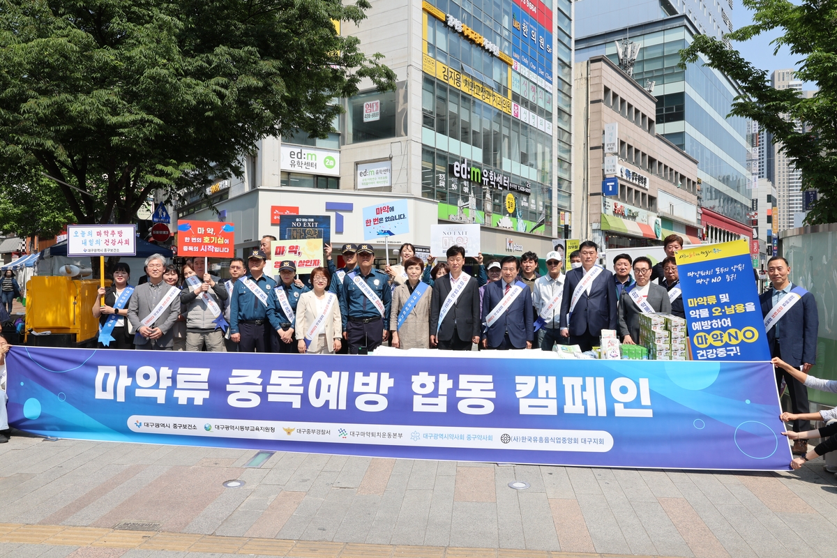 Áö³ 5¿ù 9ÀÏ ´ë±¸¸¶¾àÅðÄ¡¿îµ¿º»ºÎ´Â µ¿¼º·Î °ü±¤¾È³»¼Ò ¾Õ ±¤Àå¿¡¼ ´ë±¸ Áß±¸Áö¿ªÀ» Áß½ÉÀ¸·Î ´ÙÀÚ°£ ¸¶¾à·ù Áßµ¶¿¹¹æ ¾÷¹«Çù¾àÀ» ¸ÎÀº 6°³ ±â°ü(Áß±¸Ã», ÁߺΰæÂûû, ´ë±¸Áß±¸¾à»çȸ, µ¿ºÎ±³À°Áö¿øÃ», (»ç)Çѱ¹À¯ÈïÀ½½Ä¾÷Áß¾Óȸ´ë±¸±¤¿ª½ÃÁöȸ, ´ë±¸¸¶¾àÅðÄ¡¿îµ¿º»ºÎ)°ú ÇÔ²² ¸¶¾à·ù Áßµ¶¿¹¹æ ÇÕµ¿ Ä·ÆäÀÎÀ» ½Ç½ÃÇÏ¿´´Ù.